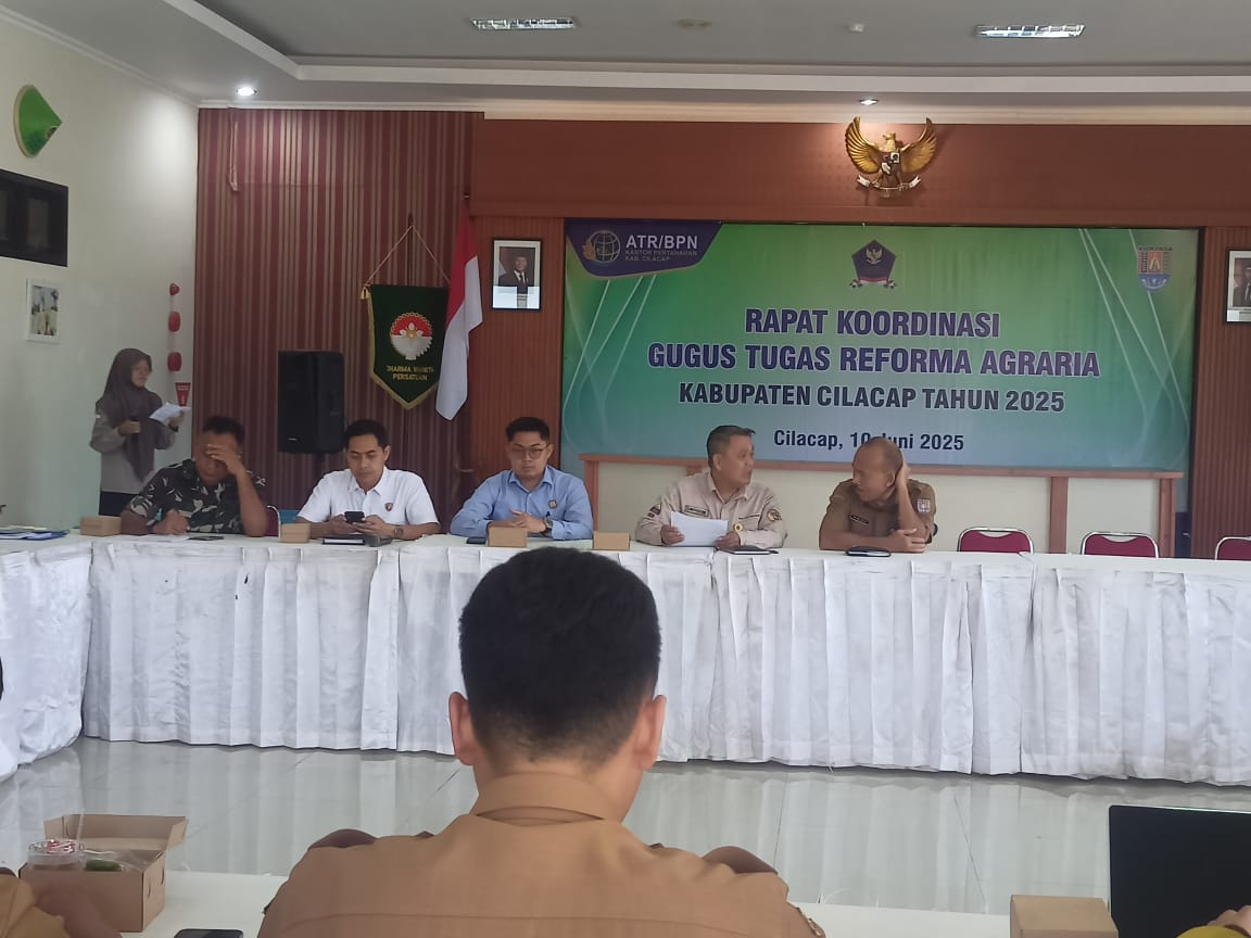 Cilacap – Kejaksaan Negeri Cilacap turut serta dalam Rapat Koordinasi Tim Gugus Tugas Reforma Agraria (GTRA) Kabupaten Cilacap Tahun Anggaran 2025 yang diselenggarakan di Aula Lantai 3 Kantor Pertanahan Kabupaten Cilacap pada hari Selasa, 10 Juni 2025.
