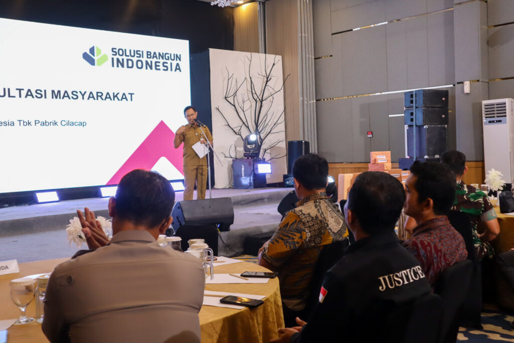 Bupati Cilacap Dr. Syamsul Auliya Rachman, S.STP., M.Si, dalam sambutannya, mengapresiasi inisiatif PT SBI dalam membuka ruang dialog dengan masyarakat terkait pengelolaan lingkungan. Beliau menekankan pentingnya keterbukaan informasi dan partisipasi masyarakat dalam pengawasan lingkungan untuk menciptakan iklim usaha yang sehat dan berwawasan lingkungan. Bupati juga mengajak seluruh elemen masyarakat untuk aktif memberikan saran, masukan, serta evaluasi terhadap pelaksanaan pengelolaan lingkungan yang telah dilaksanakan oleh PT SBI.