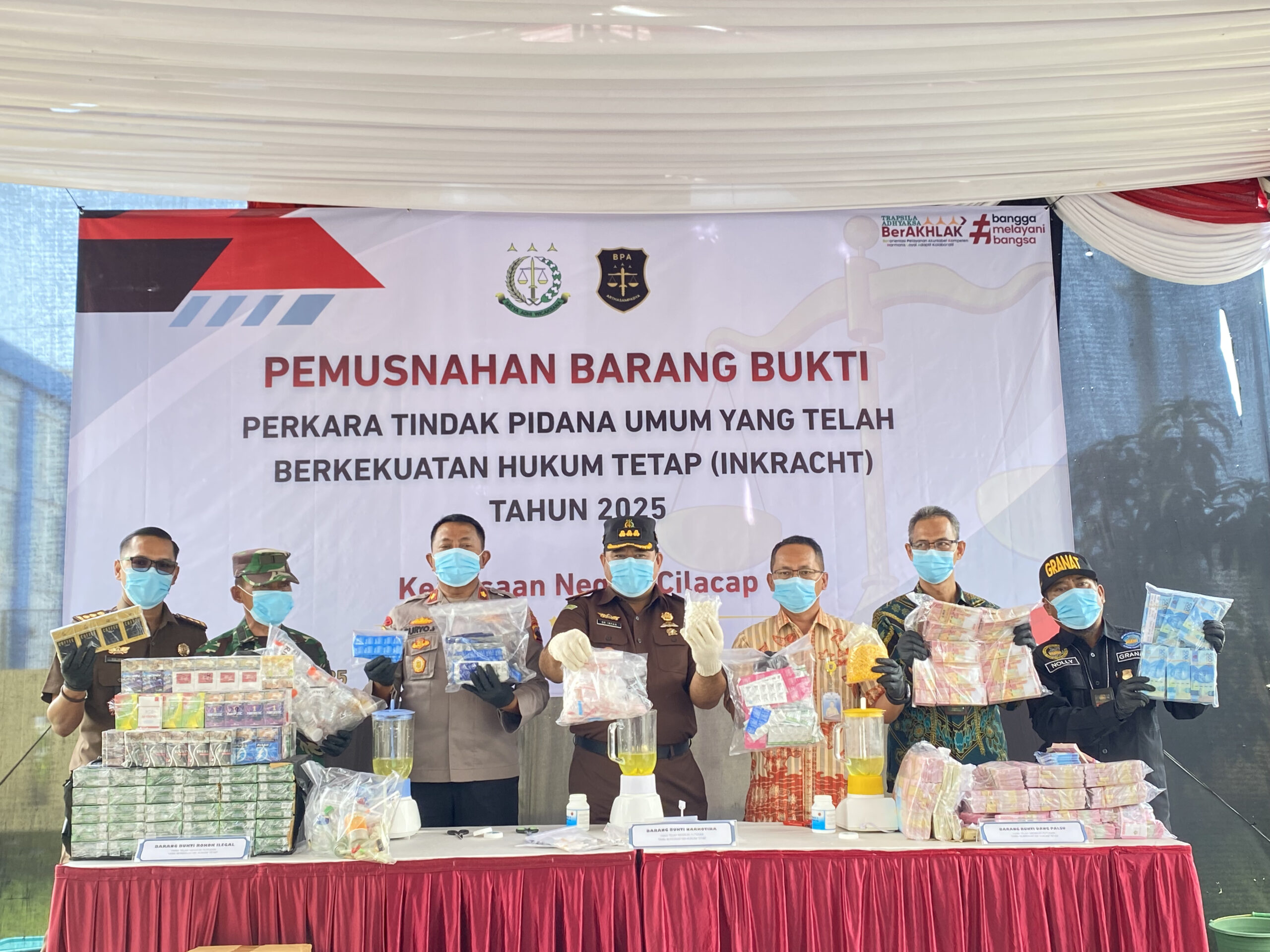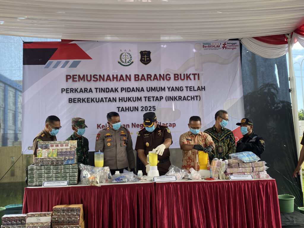 Pemusnahan barang bukti ini mencakup berbagai jenis, mulai dari narkotika, obat-obatan terlarang, rokok ilegal, hingga uang palsu bernilai miliaran rupiah. Kepala Kejari Cilacap, Muhammad Irfan Jaya, memimpin langsung acara tersebut dan menegaskan bahwa eksekusi barang bukti merupakan bagian integral dari penyelesaian perkara.