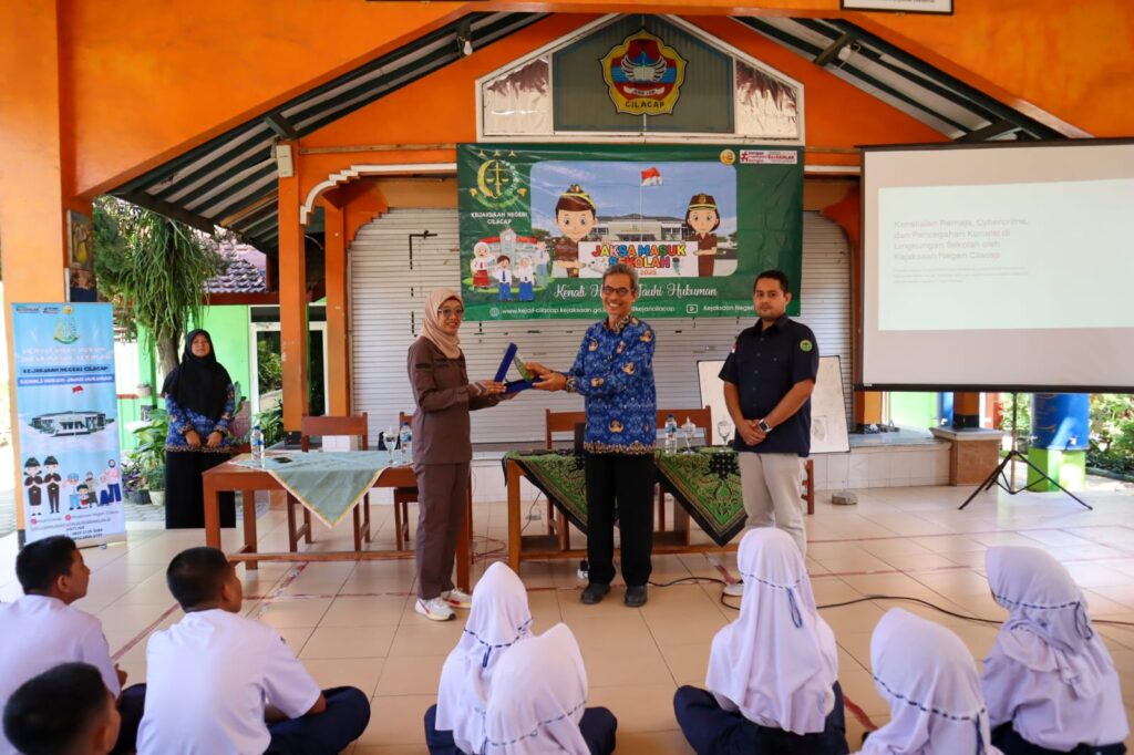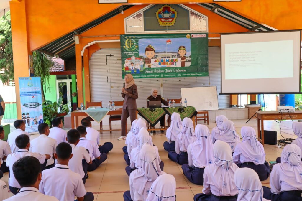 Pada hari Kamis, tanggal 17 Juli 2025, pukul 09.00 hingga 10.30 WIB, telah dilaksanakan Penyuluhan Hukum Program Jaksa Masuk Sekolah di Aula SMP Negeri 1 Jeruklegi, Jl. Raya Tritih Lor, Plered, Tritih Lor, Kecamatan Jeruklegi, Kabupaten Cilacap. Kegiatan ini mengusung tema “Kenakalan Remaja, Cybercrime, dan Pencegahan Korupsi di Lingkungan Sekolah” yang diselenggarakan oleh Kejaksaan Negeri Cilacap.