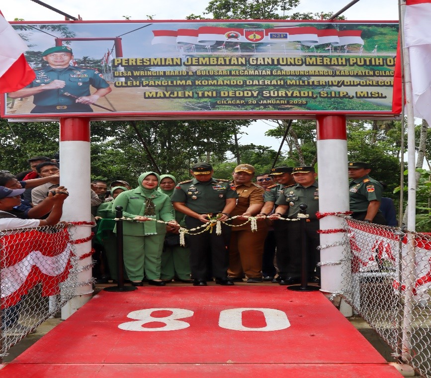 Pada hari Senin, tanggal 20 Januari 2025, pukul 10.27 WIB hingga 11.25 WIB, telah dilaksanakan peresmian Jembatan Gantung Merah Putih oleh Panglima Kodam IV/Diponegoro, Mayjen TNI Deddy Suryadi, S.Ip., M.Si, di Desa Bulusari, Kecamatan Gandrungmangu, Kabupaten Cilacap. Acara ini dihadiri oleh sekitar 150 orang, termasuk pejabat daerah, tokoh masyarakat, dan warga setempat.