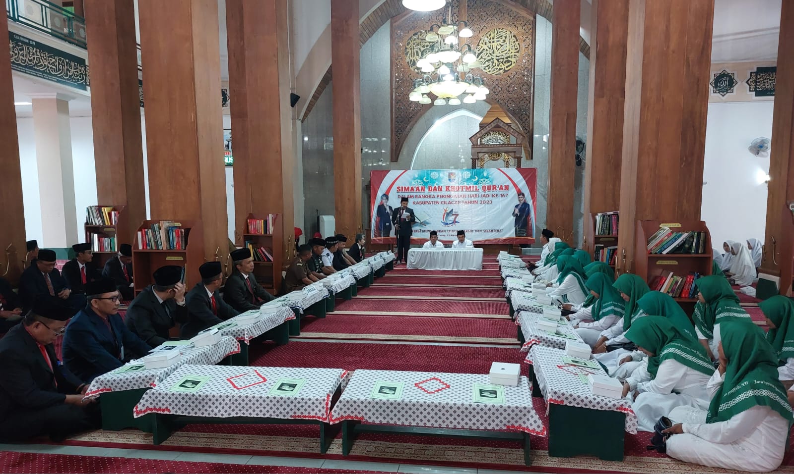 Senin tanggal 20 Maret 2023 Pukul 07.00 WIB s,d 07.30 WIB bertempat di Masjid Agung Darussalam Cilacap JI.Jend. Sudirman No. 32 Kel Sidanegara Kec. Ciacap Tengah Kab.Cilacap, telah dilaksanakan Semaan dan Khataman Al-Qur’an dalam rangka Peringatan Hari Jadi ke-167 Kab. Cilacap tahun 2023 dengan tema “Bersinergi mewujudkan Cilacap bersih dan sejahtera” yang diikuti kurang lebih 100 orang hafid Alquran
